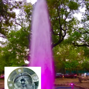 Application: Outdoors installation with very thick & high Volcano effect of frothy water, suitable for large size public parks, Rotary, Commercial place, Residential entry gate welcome fountain. It give 25-30 feet high water effect like Volcano shape & looks spectacular in night when illuminated with inbuilt colour changing LED Lights.